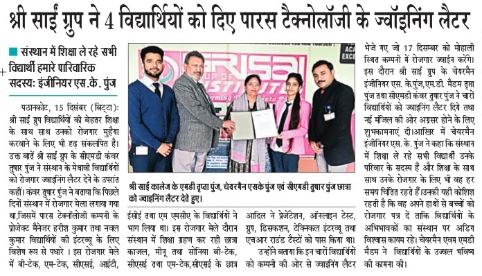 Training & Placement Department has an important role to play in a student’s future and is an indispensable pillar of the Institute. This cell continuously strives to help students in pursuing their career goals by acquiring employment-seeking skills and ultimately to attain desired employment. This is accomplished through building a strong partnership amongst students, alumni, faculty-members and industries.